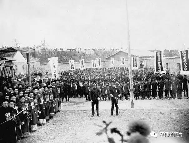 庚子国难后,清廷逐步实施新政。一身旧打扮的官员与着新式服装的学生,在同一会场集会。
