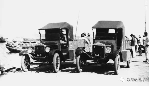 汽车传入威海之初,曾被威海人视为“魔鬼车”。图为进入威海的第一批汽车,摄于1927年。