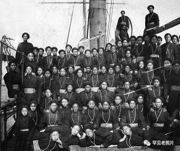 19世纪90年代,北洋海军美籍军官马吉芬为“威远”舰士官和练勇(见习水兵)所拍摄的合影照。