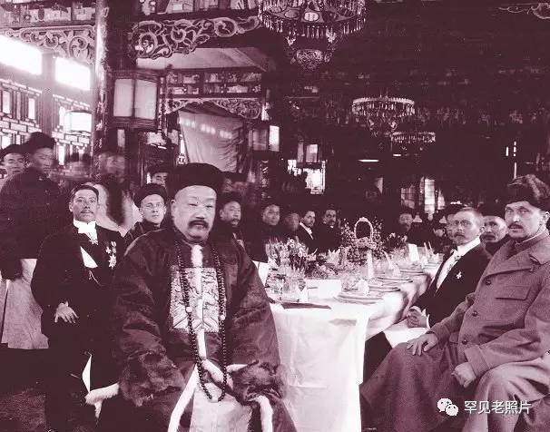 1908年,兰州的一次西餐会,右为荷兰的探险家马达汉,左中为陕甘总督升允。