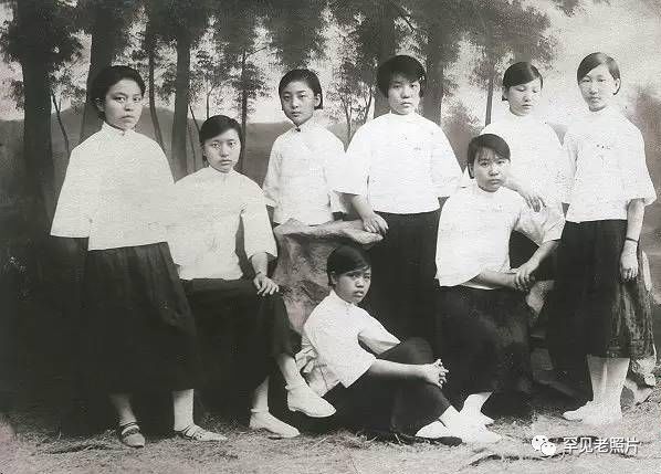 这张照片拍摄于1925年,女学生们一式的齐耳短发,白色上衣衬着暗花黑裙,端庄而洁净,尽显新女性的风采。