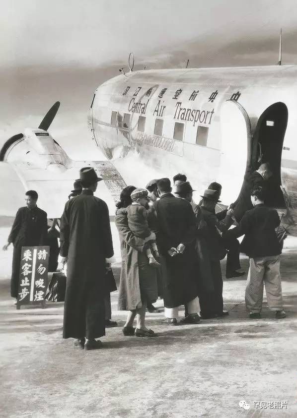 民国时期,在济南机场登机的旅客。摄于20世纪40年代。
