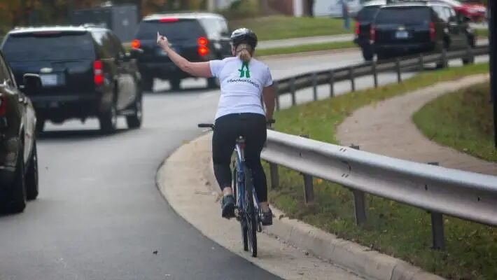 2017年10月28日早晨,她骑车出门锻炼。骑到川普高尔夫球场附近的时候,她注意到了一列车队。