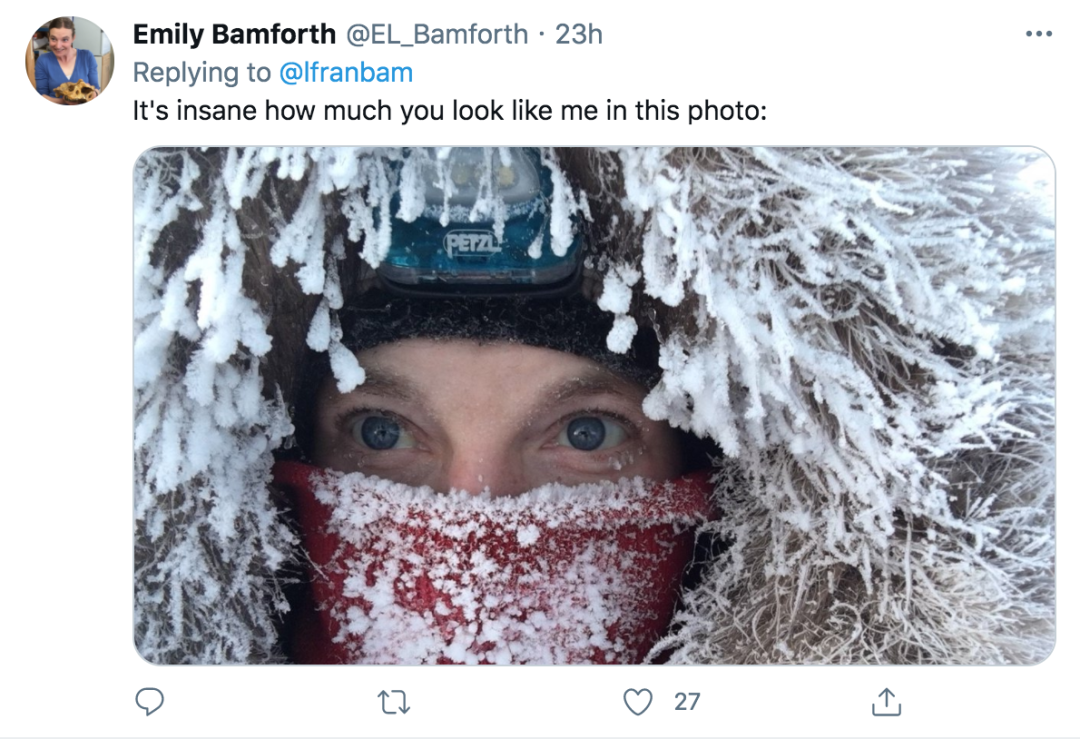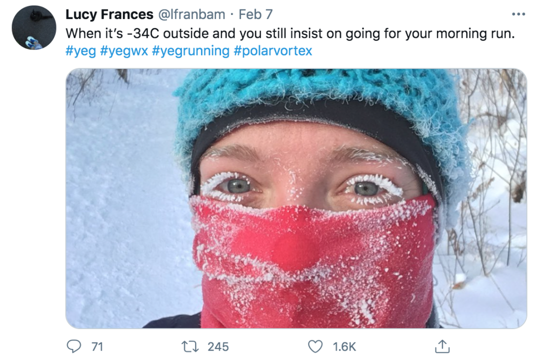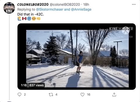 就连隔壁的大兄弟也来补刀:阿尔伯塔省今早-34℃,有那么一点点冷吧。