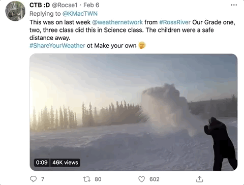 但是乐观又有爱的加拿大人就是喜欢苦中作乐,比如这个总也玩不够的trick(想尝试的小伙伴一定一定一定要确定是用开水在温度极低的室外,不能用冷水哦):