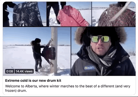 除了孩子们之外,大人们也玩的不亦乐乎。阿尔伯塔省音乐人Kyle Brittain就组建了一个“冻衣服乐队”,他们还推出了“新鲜热乎”的单曲。