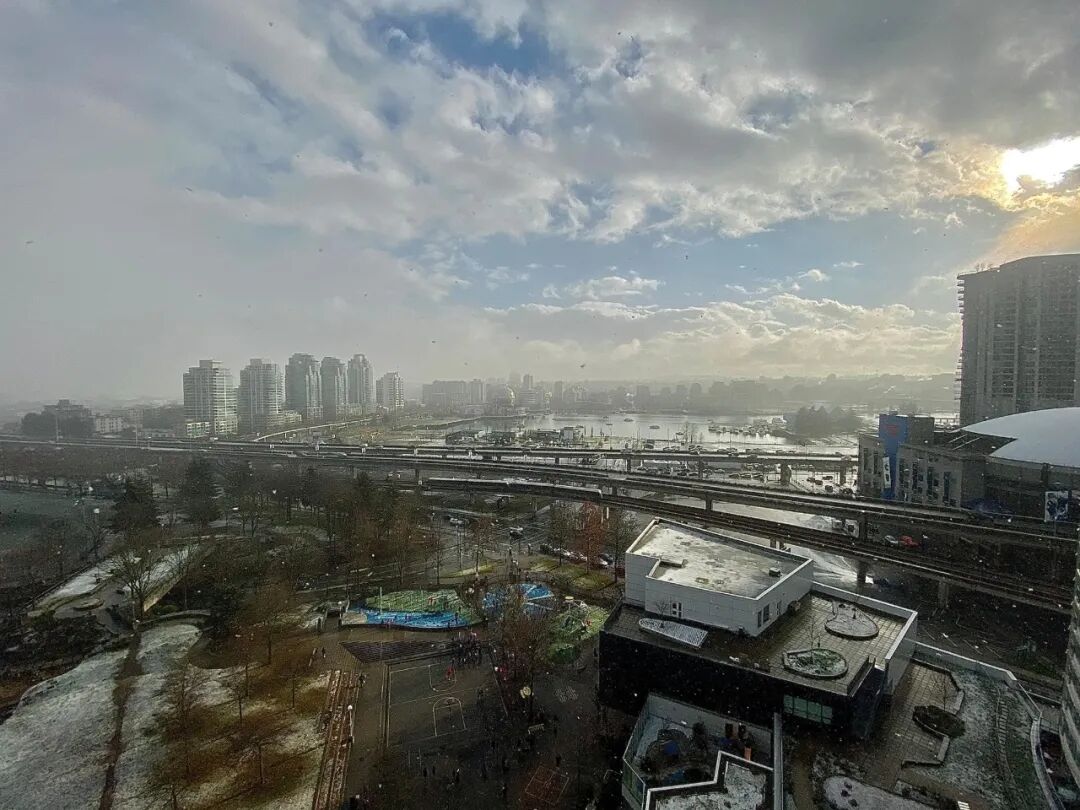 谁能想到年前最后一个星期一,温哥华竟然美成这样?温哥华全城在8号星期一的下午上演了“一边阳光普照,一边大雪纷飞”的奇异景色。