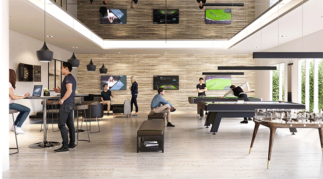 110, 000平方英尺公共区域,特设室内泳池、 健身室、娱乐室、休闲区、户外电影院等