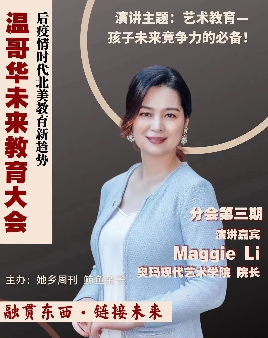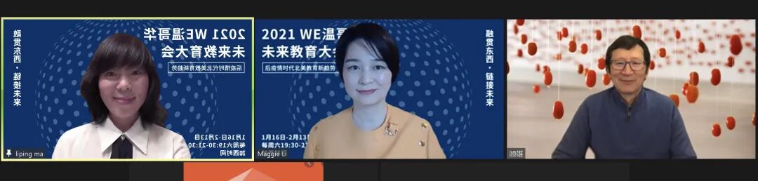 2月6日在2021WE首届温哥华未来教育大会上,奥玛现代艺术设计学院院长Maggie Li作为第三场的主讲人,与特约嘉宾UBC艺术系终身教授顾雄教授一起为大家带来了一场关于艺术教育的高质量的讨论。
