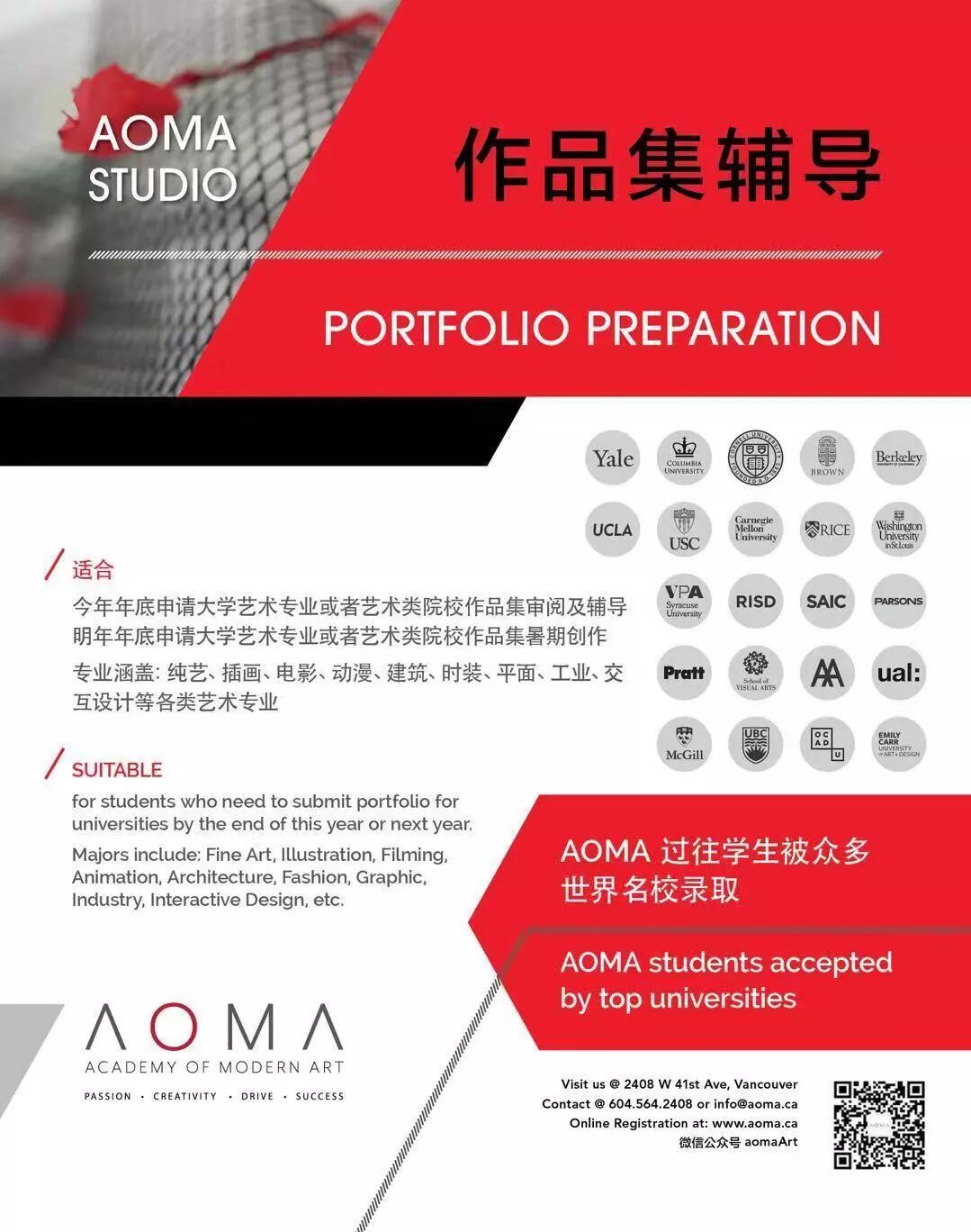 如有关于报名艺术课程、申请艺术大学、作品集辅导等问题,请在文末扫码加奥玛客服微信咨询!