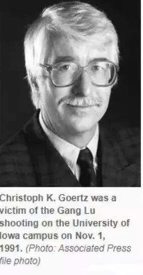 他首先开枪击中他的博士研究生导师、47岁的戈尔咨教授。戈尔咨教授应声倒下,他又在教授脑后补了一枪。