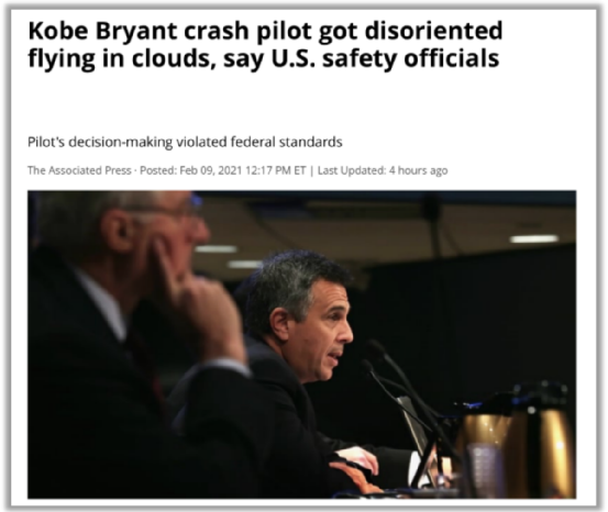 NBA球员科比事故调查报告!飞行员违规, 导致方向迷失