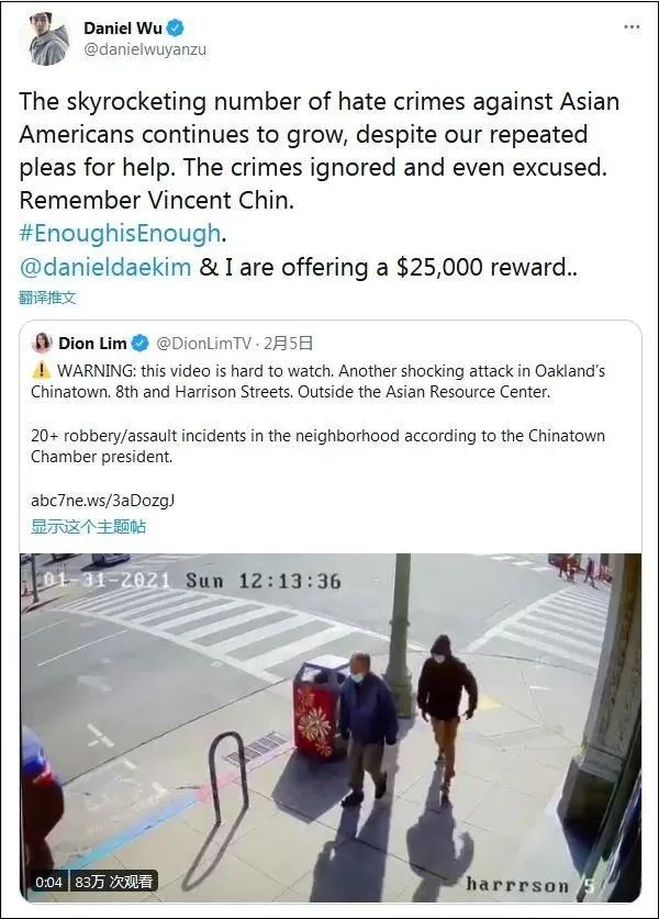 去年7月吴彦祖曾悬赏15000美元捉拿一名恶意纵火烧伤华裔老妇的凶徒,没想到半年后再次出现针对华人的恶意袭击事件……