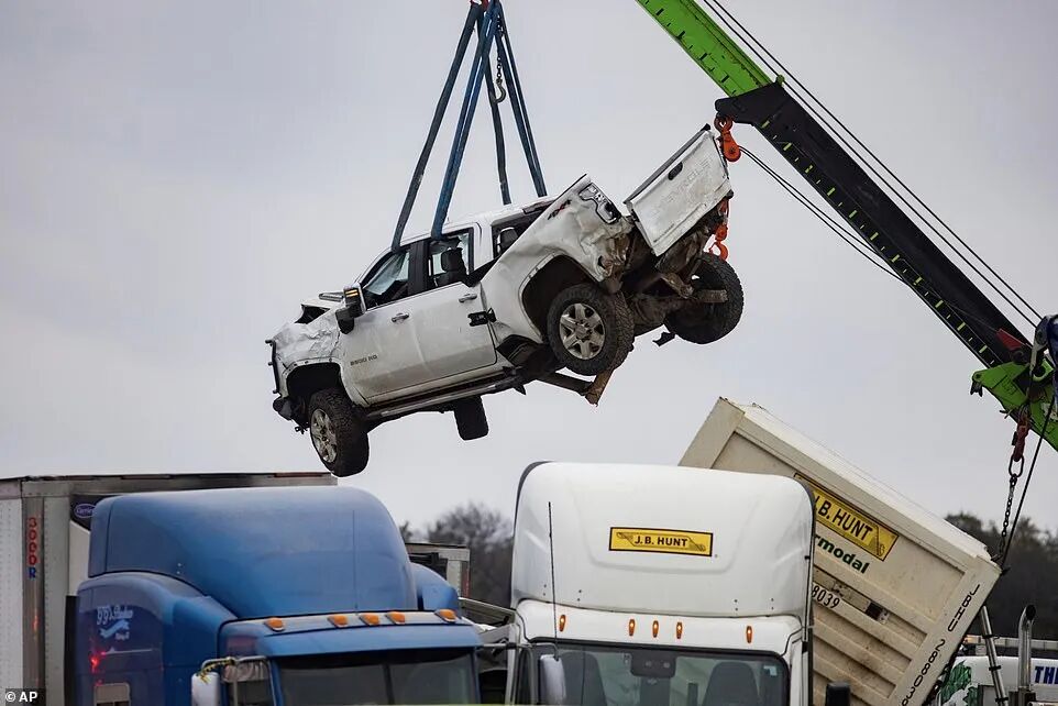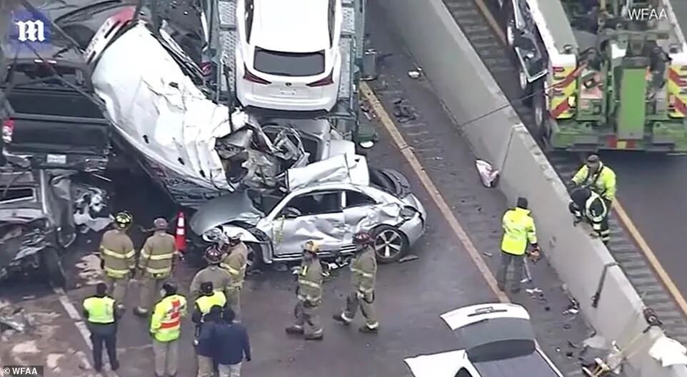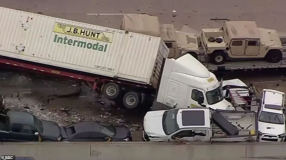 随后,货车后方不计其数的汽车连环相撞,事故现场长达1.5英里。
