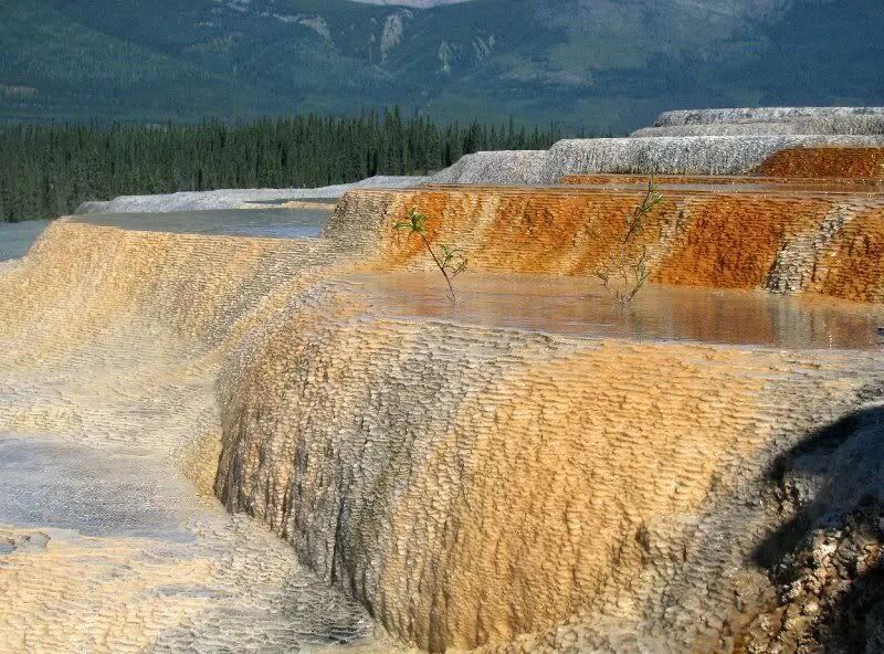 凝灰土丘是由温泉渗出的碳酸钙硬化叠加而成的,过程十分漫长,10,000年才长成今天的样子。