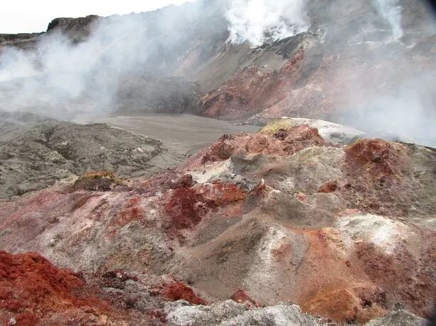 150亿年前,这里是海床,在后来漫长的5000万年间,富含氧气的水冲刷着原本为绿色、含3%铁的石床,氧化铁就这样让石床呈现出了艳丽的红色。