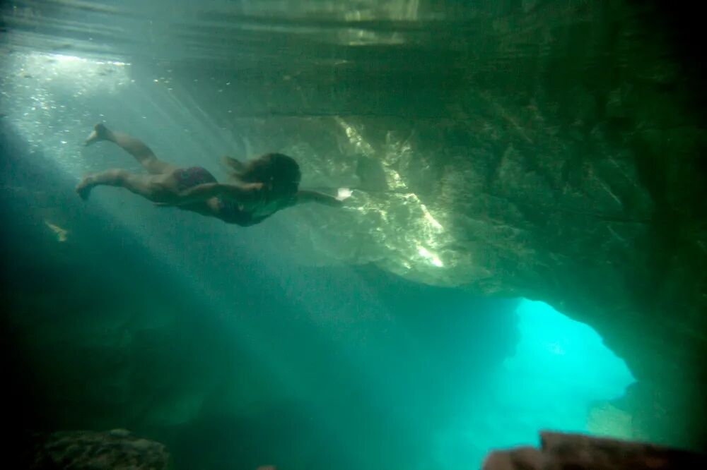 游人可以沿着湖边的岩石进入洞穴,当然,如果你足够勇敢,也可以在里面游泳哦!