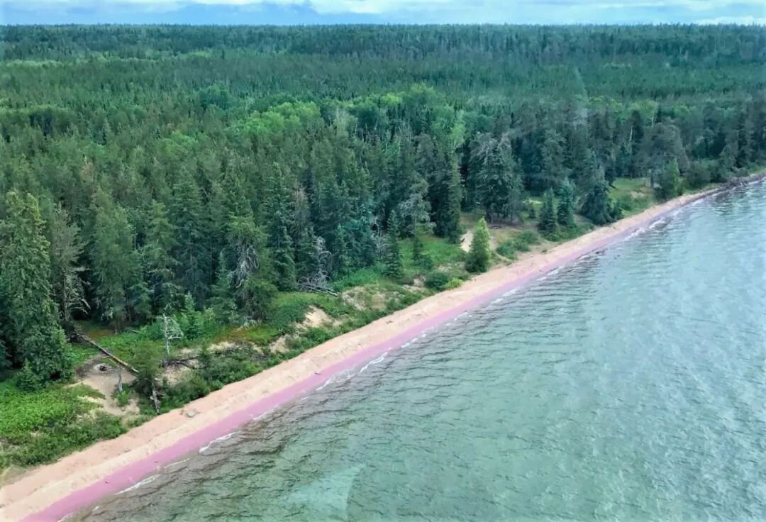 萨斯喀彻温省近期地质历史中的冰川活动,把大量的紫红色石榴石从北部的加拿大地盾带到南部地区,经风化和侵蚀而成的石榴石颗粒随着水流而慢慢沉积在湖岸地区,这才形成了紫色沙滩。