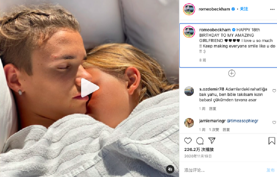 《时尚圣经》不仅在贝嫂Instagram下面回复了“❤️❤️❤️”,还在Instagram上发布了罗密欧视频宣传片。