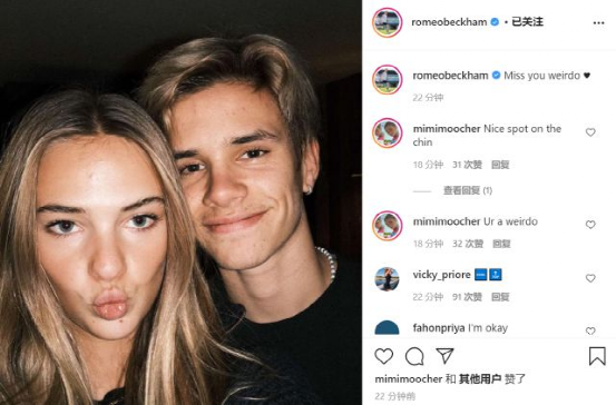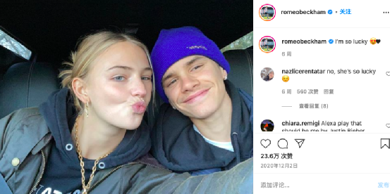 与哥哥布鲁克林·贝克汉姆订婚的妮可拉·佩尔茨也赞叹道:“不可思议!!????。”