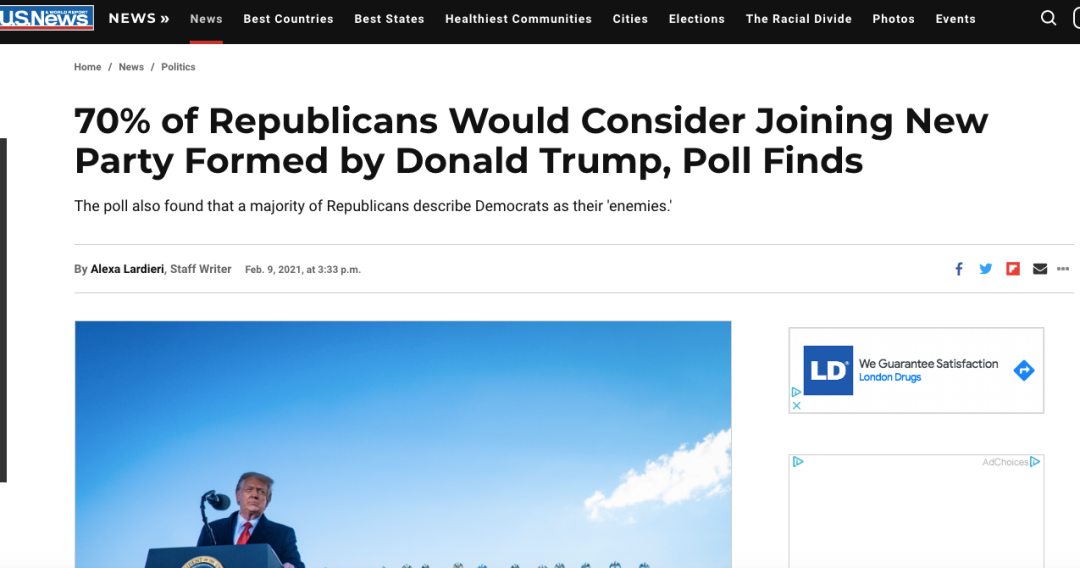 此前,就有民调显示,60%以上的共和党选民表示,若特朗普自建新党,他们会加入,显示出特朗普仍然拥有不可轻视的政治能量。