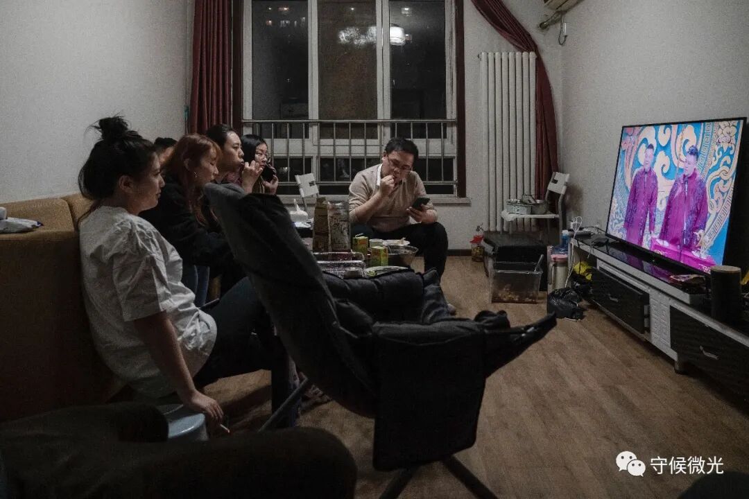 2月11日除夕夜,北京市朝阳区的一间出租屋内,几名年轻人吃完年夜饭正在看春晚。电视是当天下午刚从其中一个女孩家搭公交“运”过来的,为图省事儿直接靠着墙放在柜子上。为做年夜饭,另一位朋友还骑着摩托把家里的烤箱搬了过来。中青报·中青网记者 鲁冲/摄