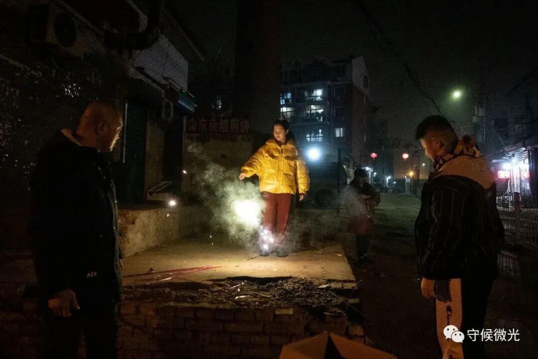 2月11日除夕夜,北京市通州区马驹桥镇,一名女孩在路口空旷处点燃最后一支烟花。因防疫要求和自身原因,她与家人今年留在北京过年,烟花是在20多公里外的通州漷县销售点排长队买来的。马驹桥镇位于北京东南六环边,与北京经济技术开发区相邻,是京冀物流和工厂的劳动力集散地,大批外来务工者聚居于此。今年许多务工者没有返乡,在这里度过春节。中青报·中青网记者 李峥苨/摄