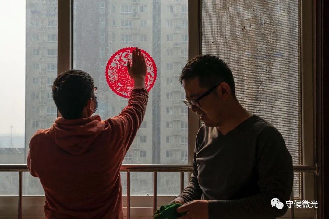 2月11日农历大年三十,北京市朝阳区,几名一同留在北京过年的室友在贴窗花,将出租屋装扮上“年味儿”。中青报·中青网记者 鲁冲/摄