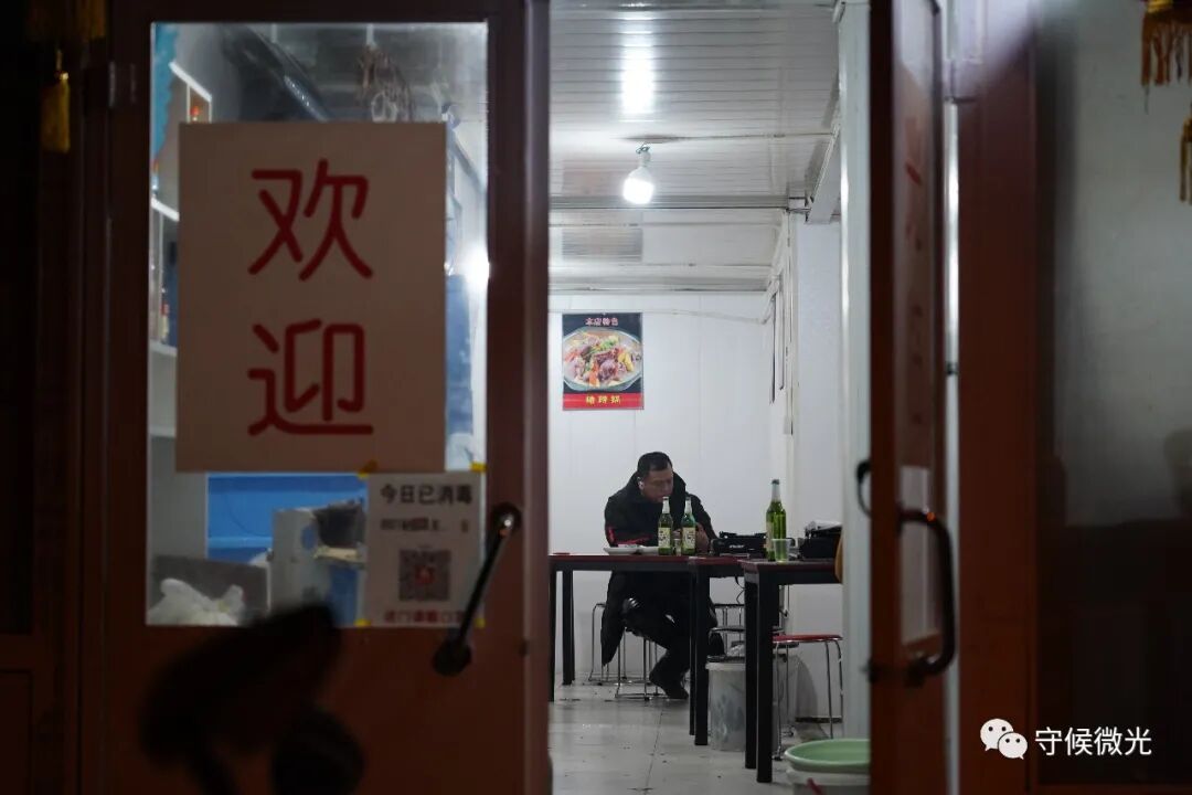 2月11日除夕夜,北京市亮马厂村,快递员陈师傅在村里的小餐馆吃年夜饭。他已经连续3年没有回家过年。这天,他约了3名同事在这里聚餐,酒过三巡,他们许下愿望,2021年要挣更多钱,来年早些回家陪孩子和老人。中青报·中青网记者 王嘉兴/摄