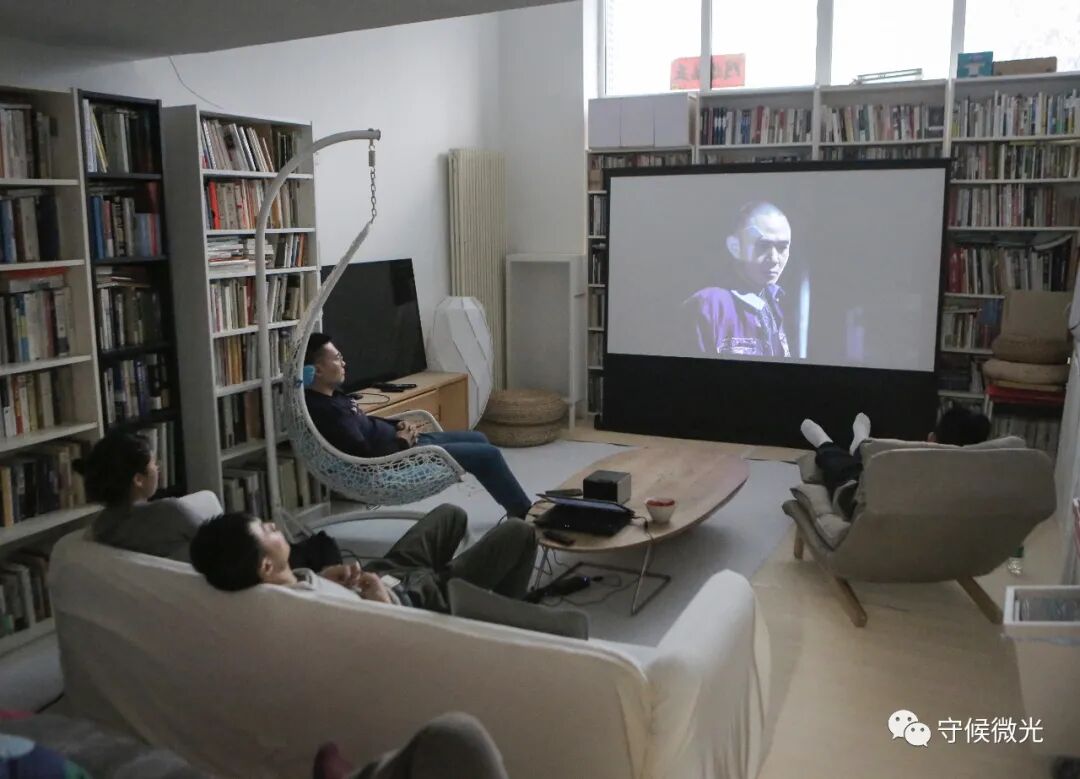 2月12日农历大年初一,北京市朝阳区,两名95后电影爱好者在网络上召集了一群同样春节不回家的小伙伴一起聚会、观影,当天放映的是片子是话剧《北京法源寺》。中青报·中青网记者 孔斯琪/摄