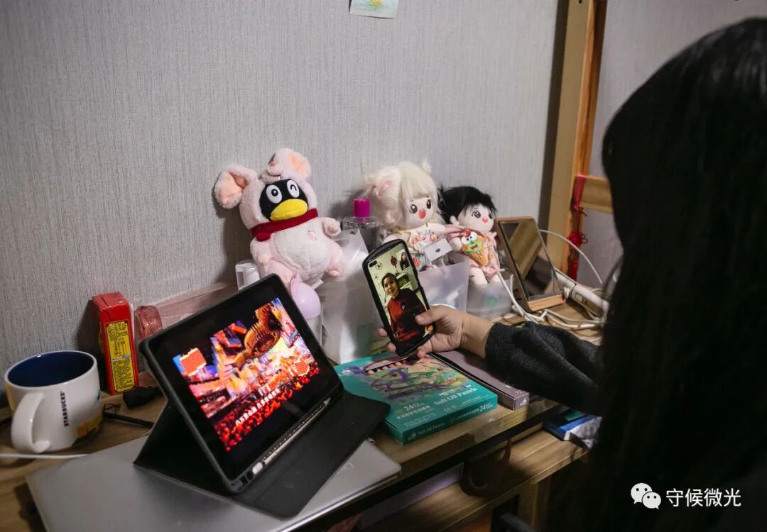 2月11日农历大年三十,北京市朝阳区的一间出租屋中,不同城市、不同身份的几名年轻人正在直播自己如何度过鼠年的最后一天。这次直播前大家彼此互不相识,“在异乡过年”是唯一的共同点。中青报·中青网记者 孔斯琪/摄