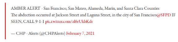 (由于孩子已经被找到,警方现在已经删除了安伯警报。这是当时的警报原文 图自Eater San Francisco)