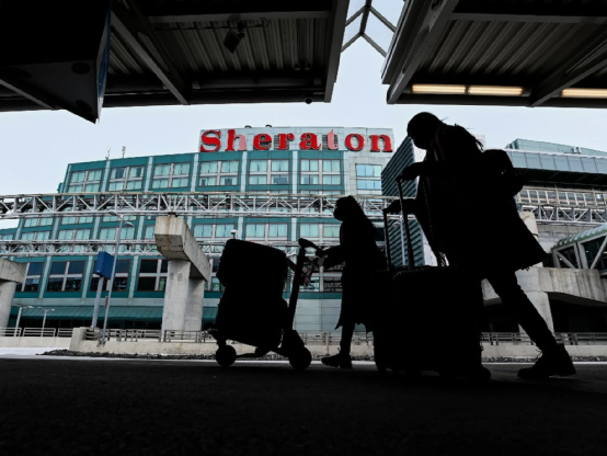 (旅客推着行李在多伦多皮尔森国际机场外 图自《国家邮报》)