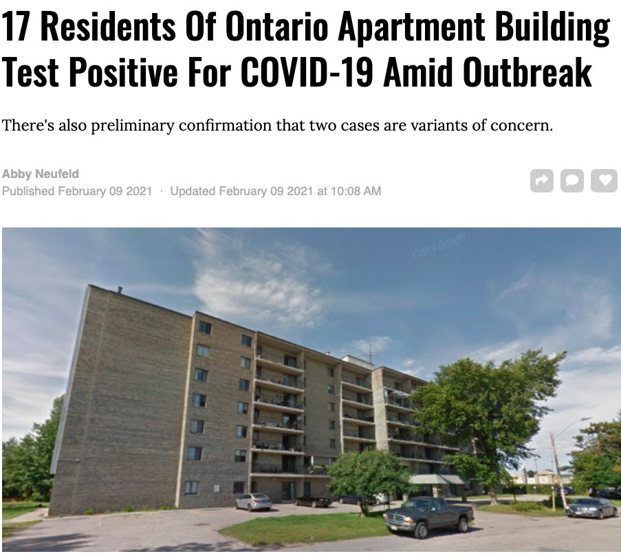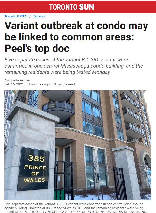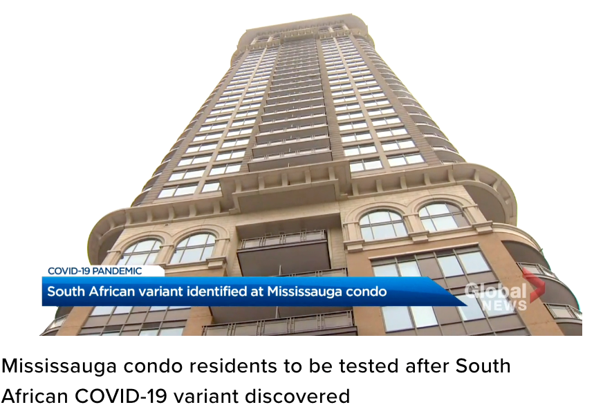 卫生官员和病毒专家最担心的变种病毒之一,最先在南非发现的变种病毒B1351现在在大多伦多地区密西沙加一栋Condo公寓住宅楼爆发传染,目前至少有5宗确诊病例!就是现在,该大楼所有居民正在进行逐层排查测试,防止更大规模的爆发。