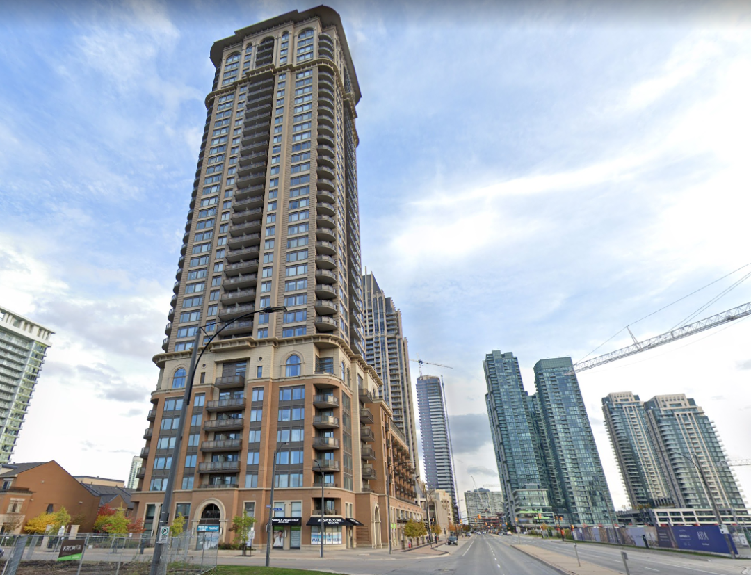 这栋Condo看起来是高档公寓,就在离购物商场不到2个路口的地方,中高层都可以俯瞰Square One。
