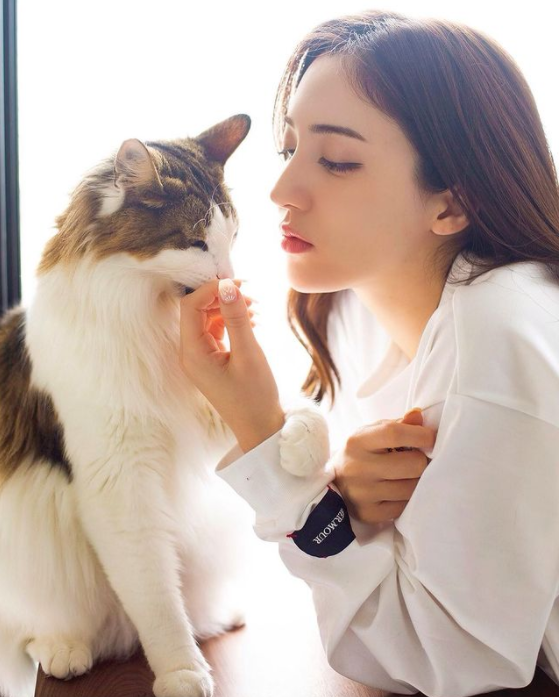 喜欢小动物,只要和猫咪在一起,就自然放松又开心。