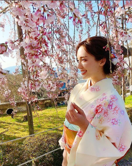 穿上和服的她也美得别有一番风味。
