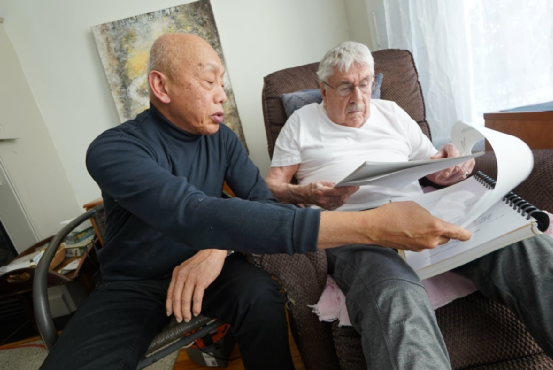 (Gilles和他的朋友Tito Jurado仔细研究法律文件,图来源:CBC)