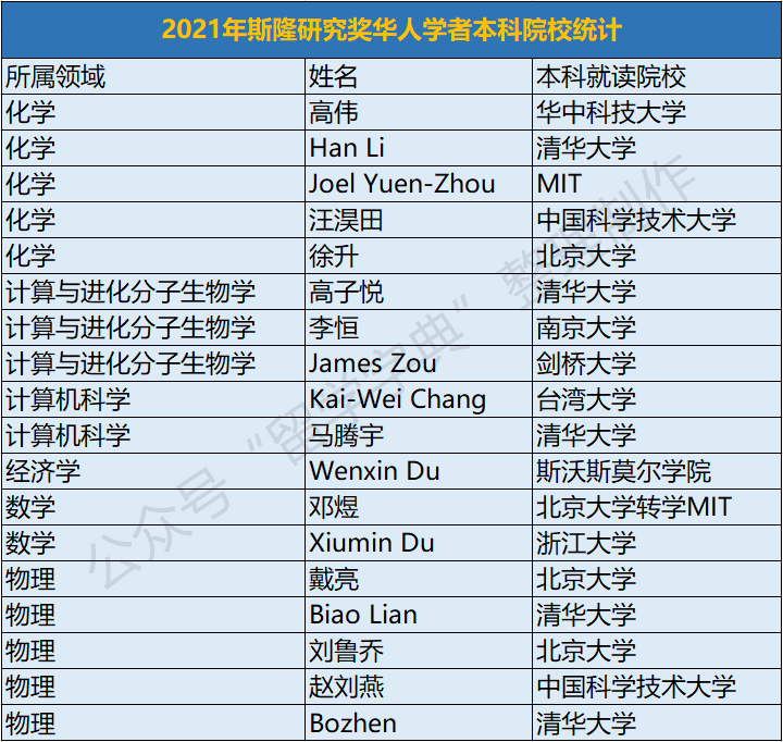 根据统计,荣获2021年斯隆奖的18名华人青年科学家中,15人都曾在中国顶尖高校接受本科教育。