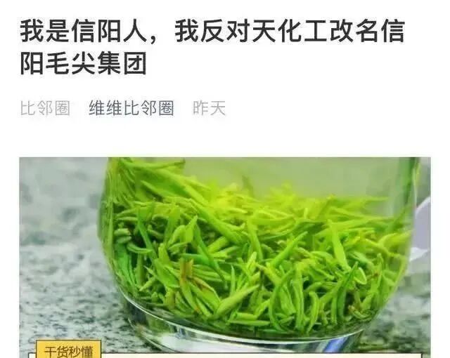 值得注意的是,当年中国天化工改名信阳毛尖时,网上就有声音表示“信阳毛尖是公共品牌,不能被某个企业拿来做资本运作的玩物。”