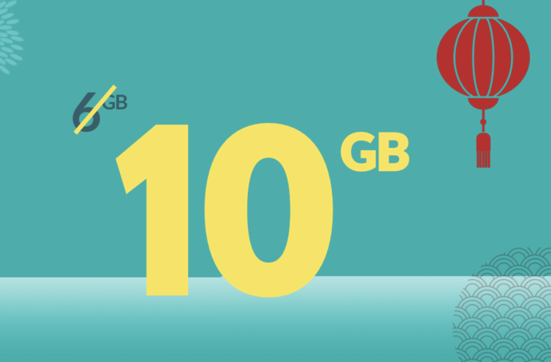$50 6GB 月费计划叠加4GB数据流量赠送相当于$50 10GB。