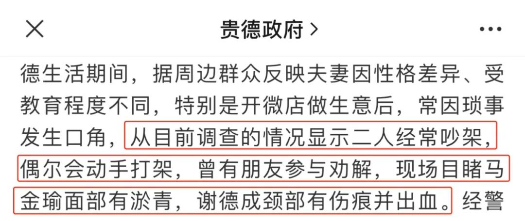 但青海贵德政府的情况调查通报,还是揭露了这段婚姻充满冲突、暴力的事实: