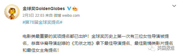 以及在刚刚公布提名的金球奖上,获得了最佳剧情片,最佳导演,最佳女主角以及最佳编剧四项提名,成为这一届金球奖的绝对黑马。