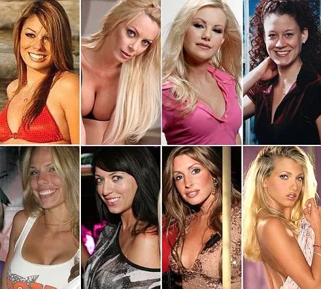 老虎睡过的女人(按时针顺序):Jaimee Grubbs, Holly Sampson, Jamie Jungers, Mindy Lawton, Loredana Jolie, Rachel Uchitel, Kalika Moquin and Cori Rist. Missing are Veronica Siwik-Daniels (aka Joslyn James) and Julie Postle