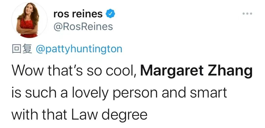 哇,太酷了,Margaret Zhang是个可爱又聪明的人,还拥有法学学位。