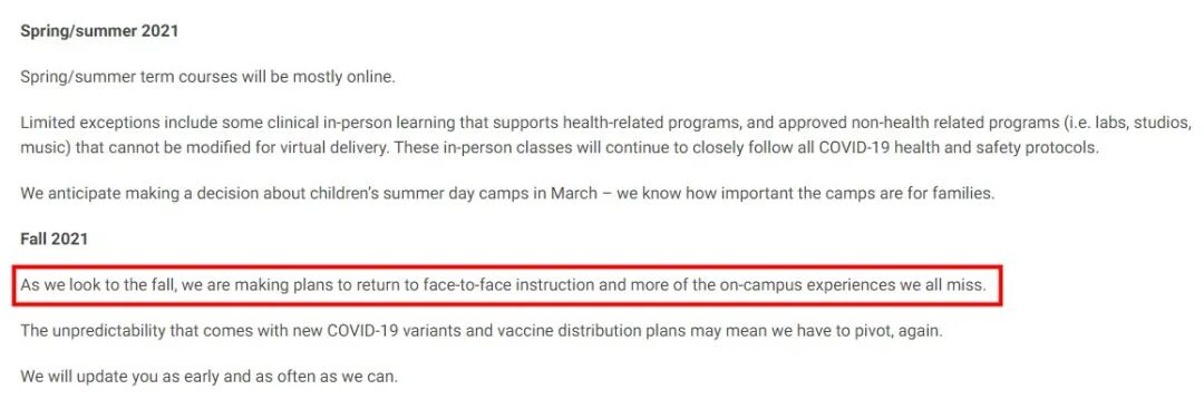 称2021年秋季学期有望恢复部分