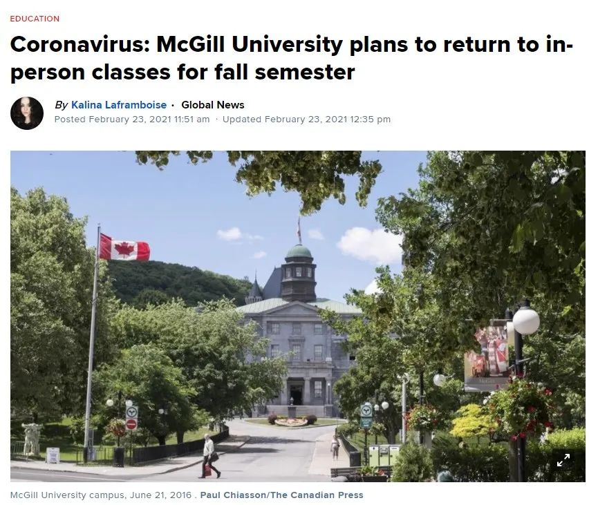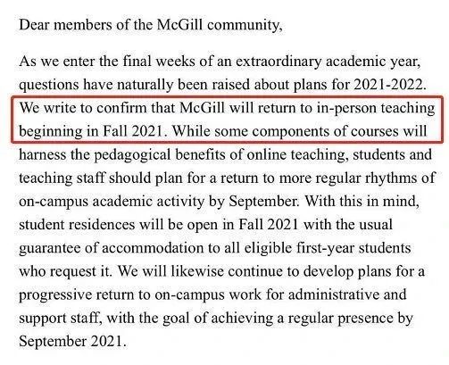 麦吉尔大学于2月23日发出通知,