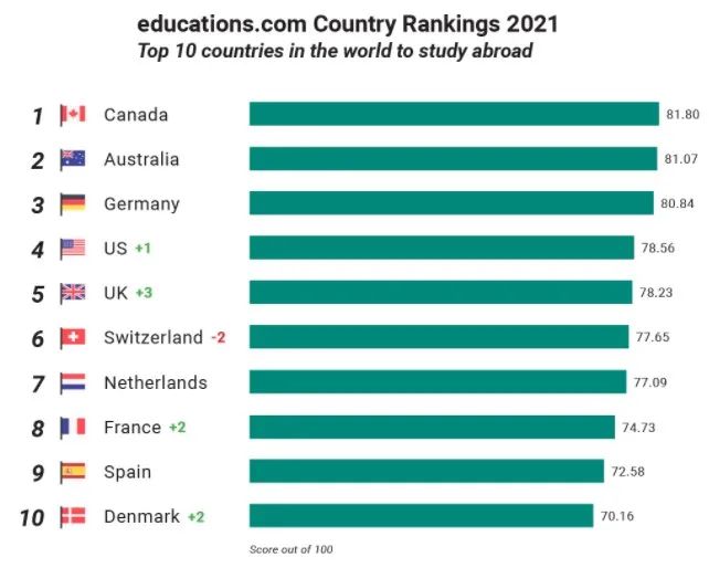近日发布了2021年“世界十大最受欢迎的留学国”,