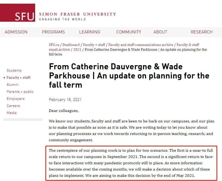 根据SFU官网通知显示,