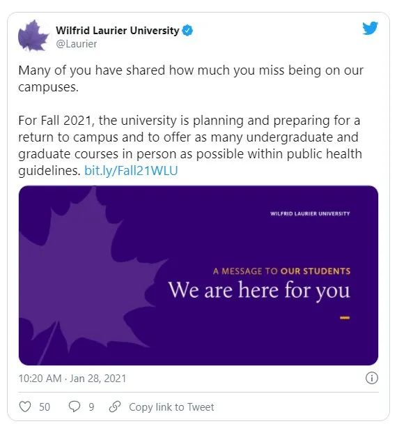 劳里埃大学在学校的官网上发公告: